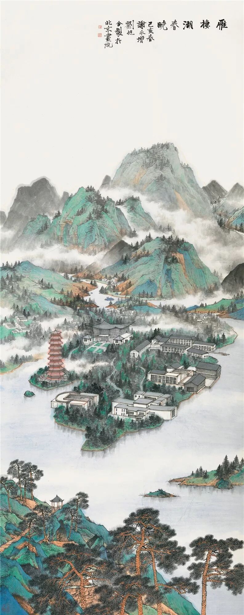 本系列由北京画院山水组画家创作的四幅北京山水画组成,构图巧妙,气势宏大。谢永增、刘旭的《雁栖春晓》描绘了北京怀柔雁栖湖春日风光,郭宝君、买鸿钧在《西山拥翠》中以北京西郊郁郁葱葱山景为对象,两者皆以青绿叠晕致青翠交辉,展现北京自然之美。在《通州新貌》里,牛朝、徐卫国以精湛画技绘制了北京城市副中心通州日新月异的宏伟面貌。庄小雷的《长城畅游》,恢弘气势又精巧雅致,给古老长城带来了新气象。