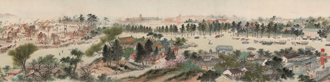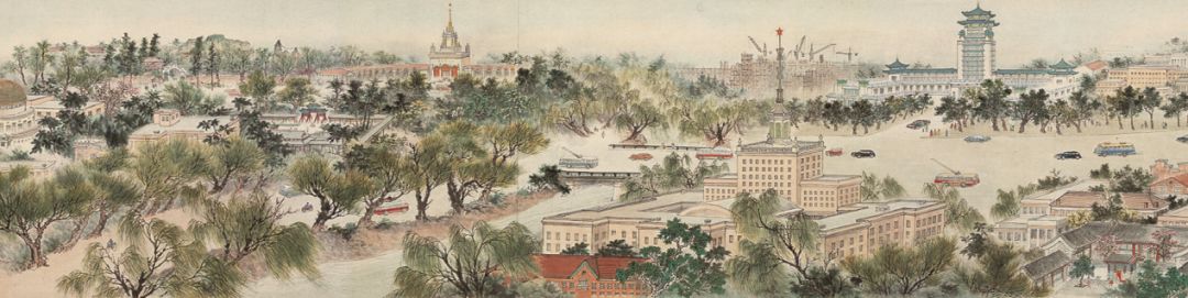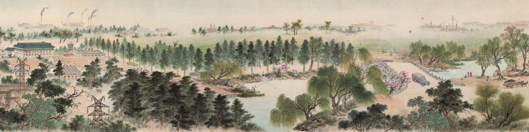 北京画院收藏的大型手卷《首都之春》作为中华人民共和国成立十周年献礼的艺术创作,引首由郭沫若题写,集合了当时六位中国画家的智慧。“春”在这里既点明画卷中首都北京的季节,又契合中华人民共和国成立初期蓬勃发展、欣欣向荣的时代主题。