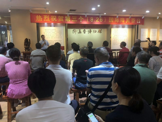 8月25日下午两点第三届国际降真香日及合作签约仪式在海南降真香博物馆举行,原海南省博物馆馆长乔德龙、海南省艺术品协会会长苗校君、海南黄花梨研究协会会长张志扬、海南省企业家协会副会长兼秘书长冷明权、海南省旅琼文艺家协会副主席兼秘书长、著名文艺评论家马良等出席。来自各地区的相关领导、降真香爱好者、媒体及企业家近200人左右参加该活动。