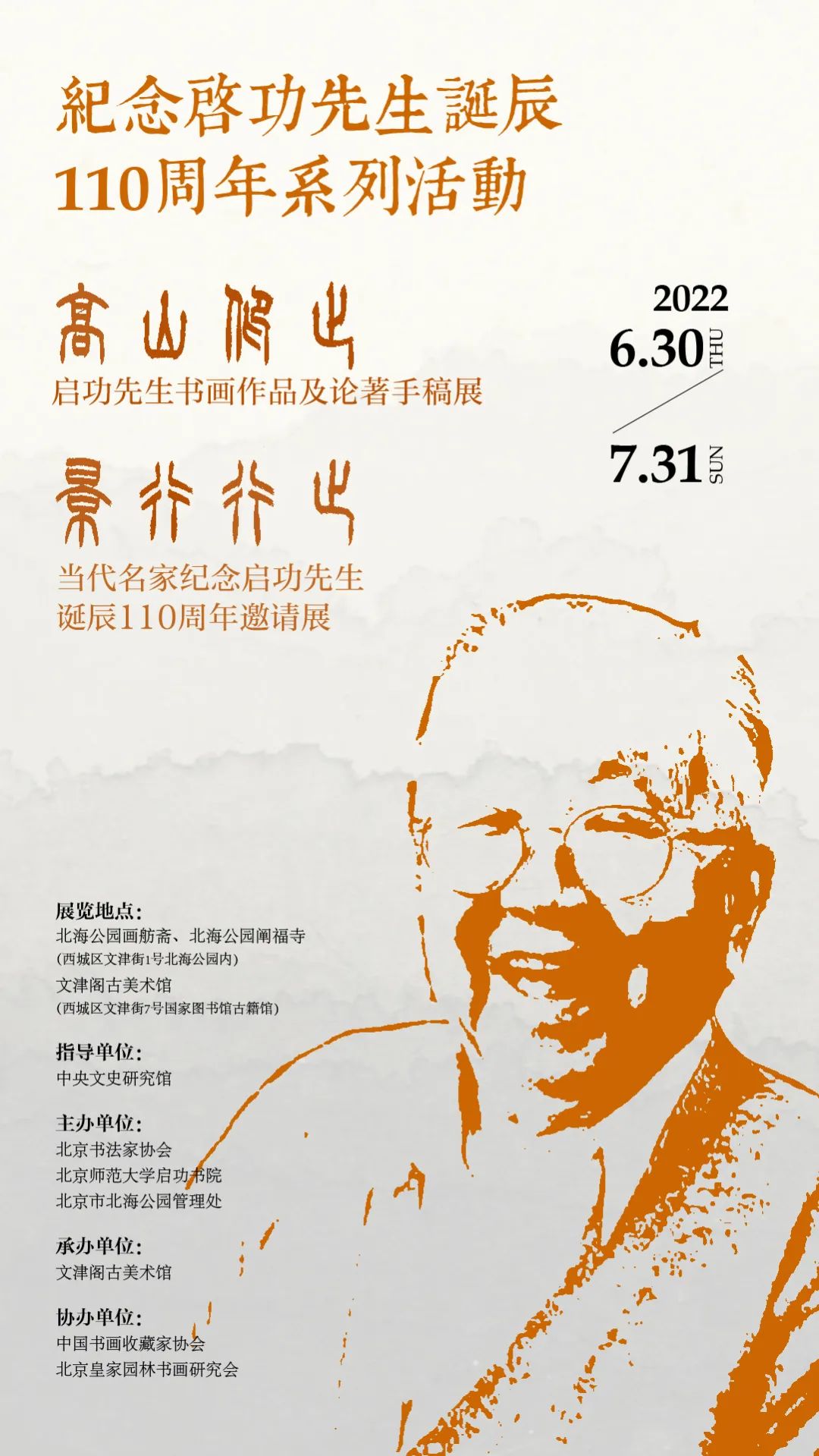 其一为“高山仰止——启功先生书画作品及论著手稿展览” ,于北海公园画舫斋、文津阁古美术馆两个展区同步展出;