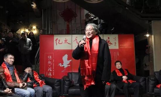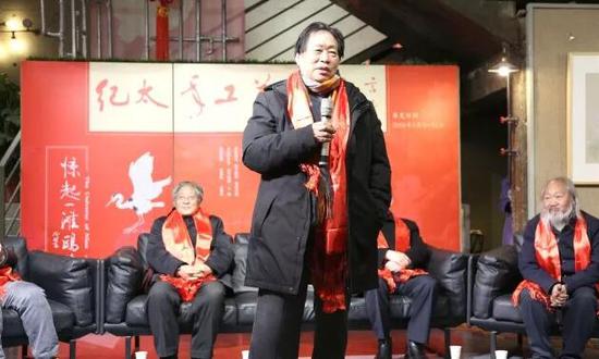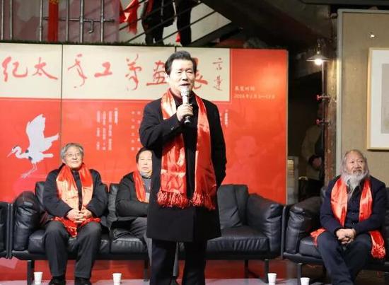 随后,纪太年先生致答谢词。他首先向到场的嘉宾、观众表示感谢,并给大家送去新春的祝福,而后他谈到,当初拿起画笔是为了治疗颈椎和解乏,在与诸多艺术大家交往过程中,耳濡目染,对绘画创作的兴趣愈加浓厚。从他热情洋溢的发言中,我们可以感受到纪太年先生对艺术的虔诚与执着。
