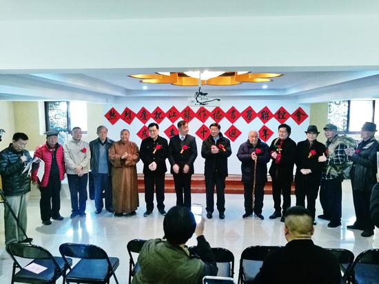 11月22日上午10:00,为庆祝江苏省作家协会书画联谊会成立十周年,由江苏省作家协会和江苏省美术家协会主办的“文心墨语·江苏省作家书画邀请展”在南京鸡鸣寺“古鸡鸣寺书画院”开幕。中国作家协会会员、原中共江苏省委副书记顾浩,中国作家协会会员、书画家、作家俞律,江苏省作协党组成员、书记处书记王朔,江苏省国画院一级美术师、江苏省艺术鉴定评估委员会书画鉴定中心主任萧平,国家一级美术师、中华诗词学会会员贺成,中国美术家协会理事、国家一级美术师尹石,中国画学会常务理事、作家张煜宝,古鸡鸣寺莲华法师等出席开幕式。
