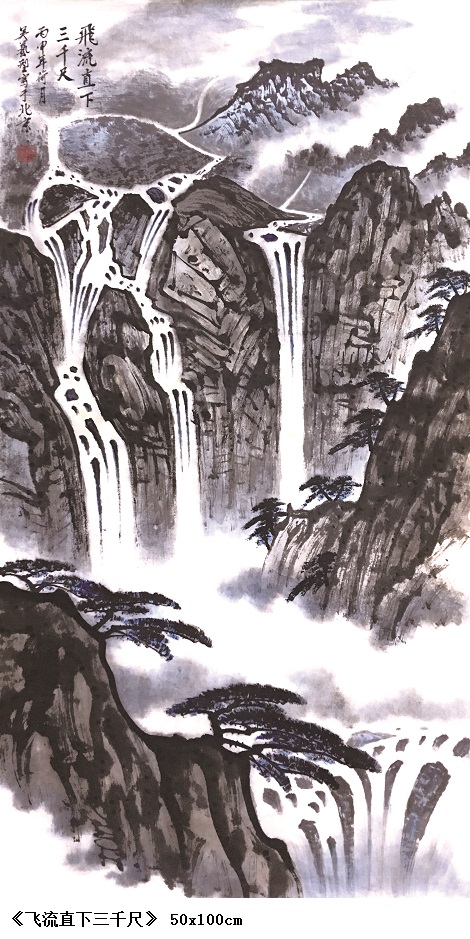 《飞流直下三千尺》 50x100cm