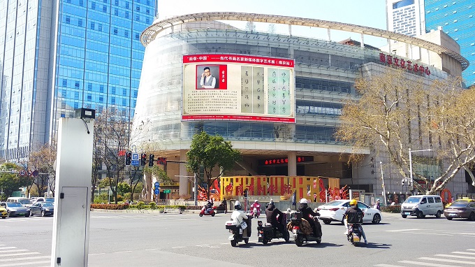 2023年3月13日--15日,“画卷·中国”当代书画名家新媒体数字艺术展(南京站)亮相南京文化艺术中心LED屏。该展览由中华优秀传统文化新媒体传播工程、亮宝艺术网主办,北京中艺博雅科技文化有限公司承办。协办单位有:北京揽月阁国际文化艺术中心、北京正阳美术馆、雄商文化产业集团股份有限公司、白洋淀文化发展研究会、雄安企业商会、河北雄安豆瓣文化传媒有限公司、山西观中文化等。