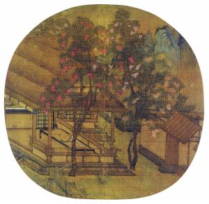 这件著录于《石渠宝笈二编》的作品,曾经被误定名为《薇省黄昏图》、《薇亭小憩图》,因为作品尺幅很小,只是一幅团扇面这么点大,过去的研究者以为画中的树是紫薇。直到上世纪中叶刘九庵先生纠正勘定,才以现在的名字《荔院闲眠图》闻世。套用鲁迅先生那句话,院子里有两棵树,一棵树是荔枝,另一棵树也是荔枝。