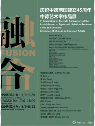 2017年7月9日,“庆祝中徳两国建交45周年——‘融合’中德艺术家作品展”将在北京慧和天语艺术空间举办。此次展览展期为2017年7月9日至29日,展览由中央美术学院副教授唐承华与德国波鸿造型艺术学院教授杨起共同策画,展出共13位中德著名艺术家的作品。